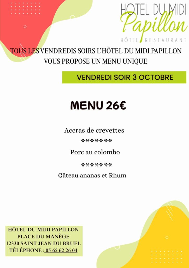 Tous les vendredis soirs nous vous proposons un menu unique à moins de 30€